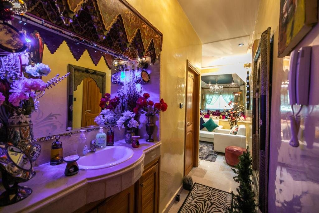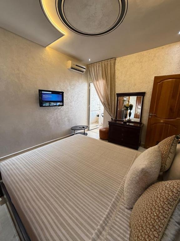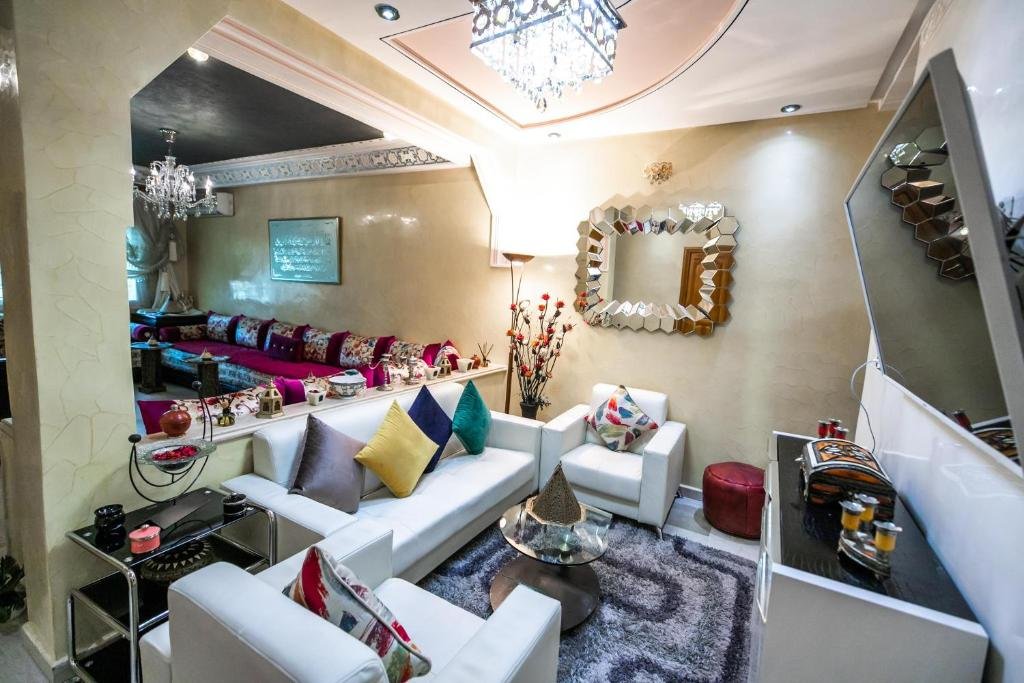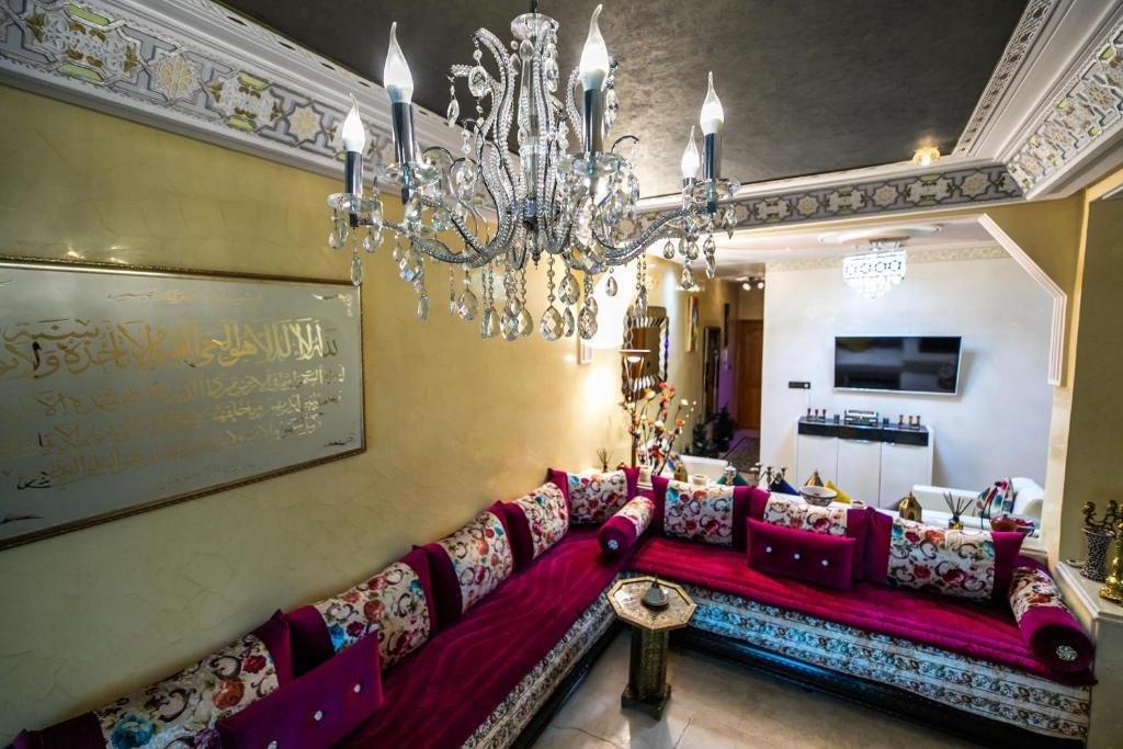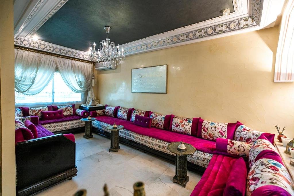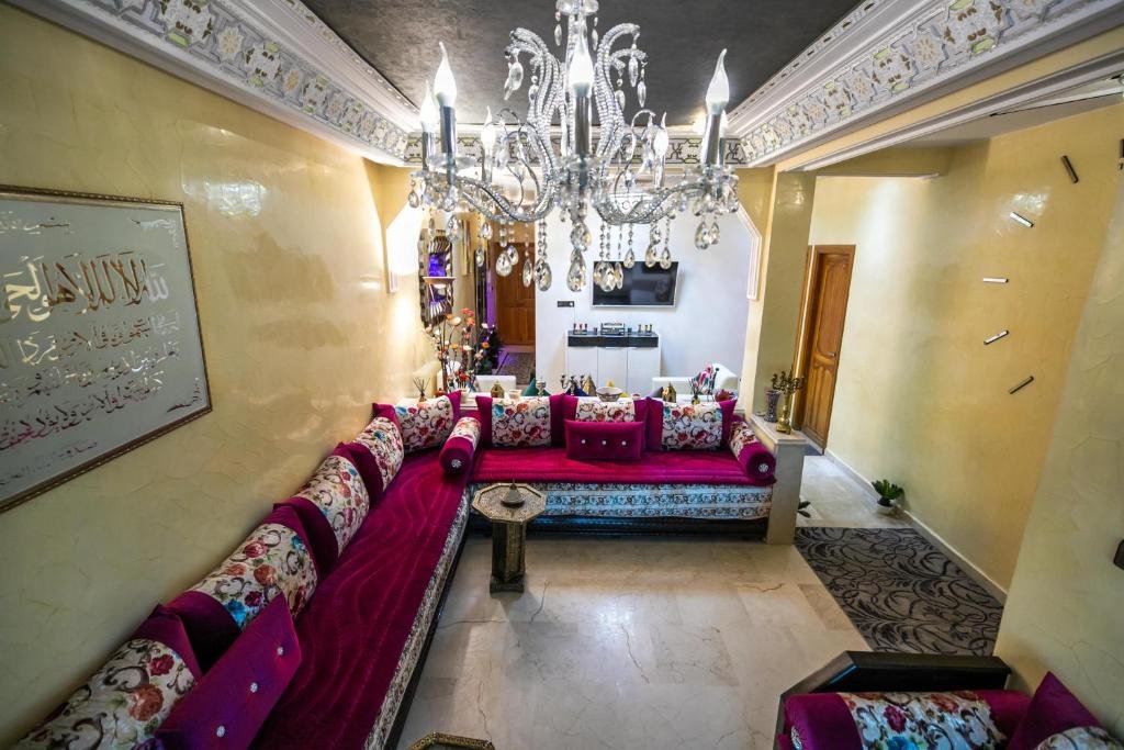 Proposant un salon commun, l’hébergement Appartement Luxe Simo vous accueille à Fès, à respectivement 500 mètres, 3,4 km et 4 km de ces lieux d’intérêt : Gare de Fès, Place Batha et Bab Bou Jeloud Fes. Cet hébergement avec climatisation est installé à 2 km de : Palais royal de Fès. Vous pourrez profiter d’un parking privé disponible sur place et d’une connexion Wi-Fi gratuite. Cet appartement comporte 3 chambres, 3 salles de bains, du linge de lit, des serviettes, une télévision à écran plat avec les chaînes du satellite, un coin repas, une cuisine entièrement équipée et une terrasse offrant une vue sur la ville. Un service de location de voitures est assuré sur place. Vous séjournerez à respectivement 4 km et 6,8 km de ces lieux d’intérêt : Medersa Bouanania et Karaouiyne. L’établissement se situe à 14 km de l’aéroport le plus proche (Aéroport de Fès-Saïss) et propose un service de navette aéroport payant.Les couples apprécient particulièrement l’emplacement de cet établissement. Ils lui donnent la note de 8,6 pour un séjour à deux.