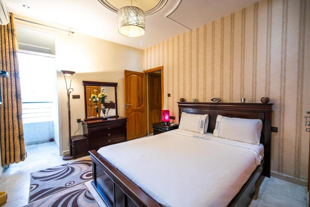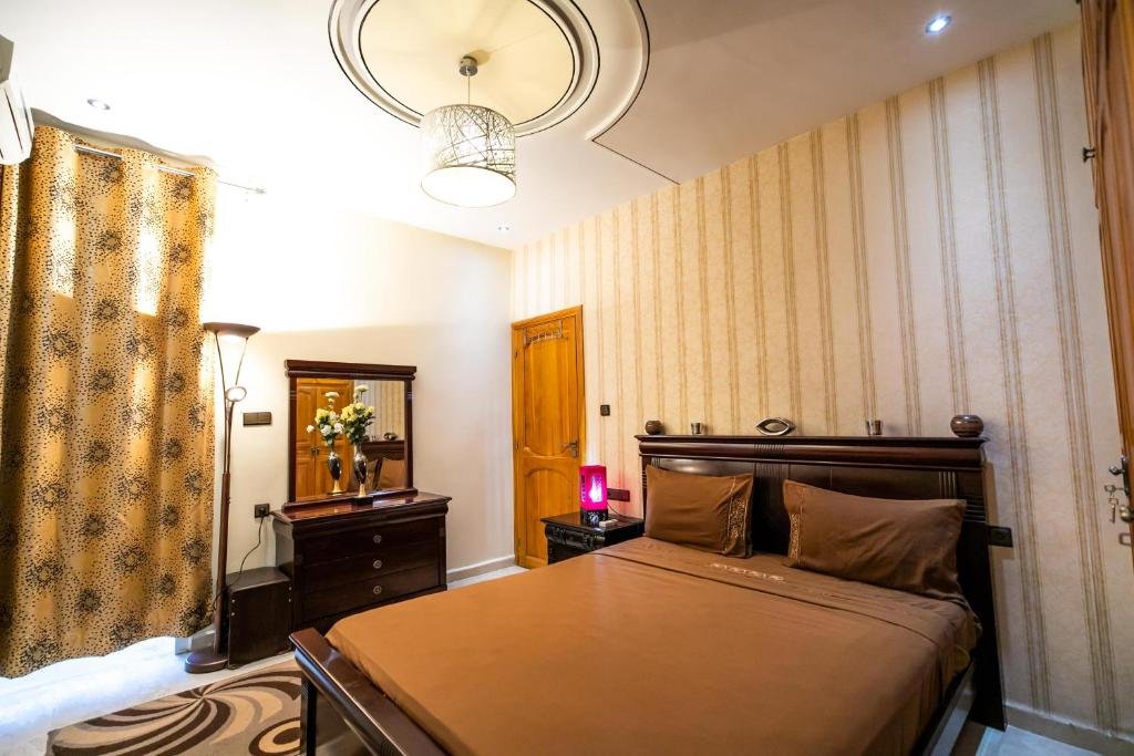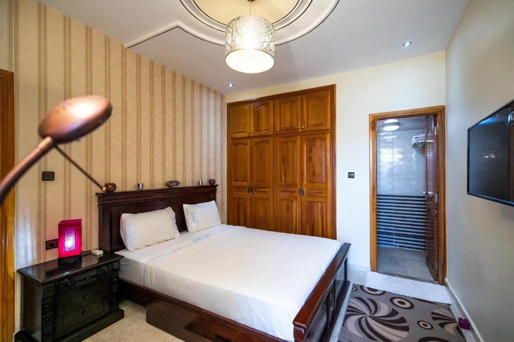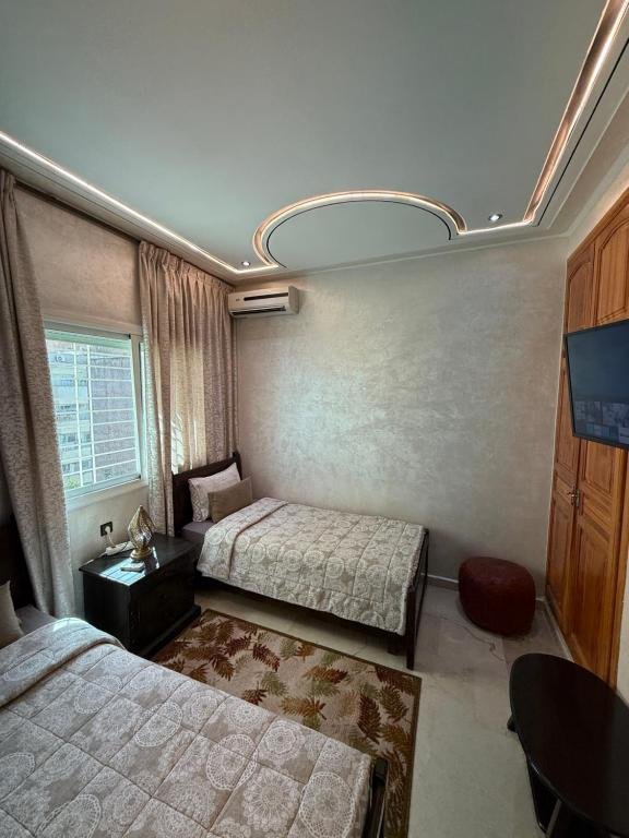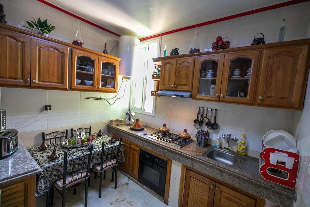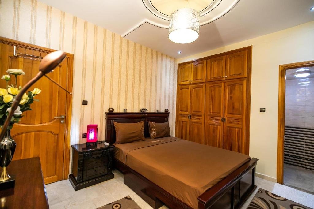 Proposant un salon commun, l’hébergement Appartement Luxe Simo vous accueille à Fès, à respectivement 500 mètres, 3,4 km et 4 km de ces lieux d’intérêt : Gare de Fès, Place Batha et Bab Bou Jeloud Fes. Cet hébergement avec climatisation est installé à 2 km de : Palais royal de Fès. Vous pourrez profiter d’un parking privé disponible sur place et d’une connexion Wi-Fi gratuite. Cet appartement comporte 3 chambres, 3 salles de bains, du linge de lit, des serviettes, une télévision à écran plat avec les chaînes du satellite, un coin repas, une cuisine entièrement équipée et une terrasse offrant une vue sur la ville. Un service de location de voitures est assuré sur place. Vous séjournerez à respectivement 4 km et 6,8 km de ces lieux d’intérêt : Medersa Bouanania et Karaouiyne. L’établissement se situe à 14 km de l’aéroport le plus proche (Aéroport de Fès-Saïss) et propose un service de navette aéroport payant.Les couples apprécient particulièrement l’emplacement de cet établissement. Ils lui donnent la note de 8,6 pour un séjour à deux.