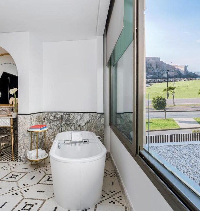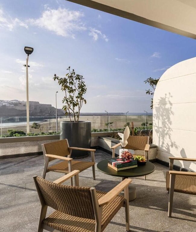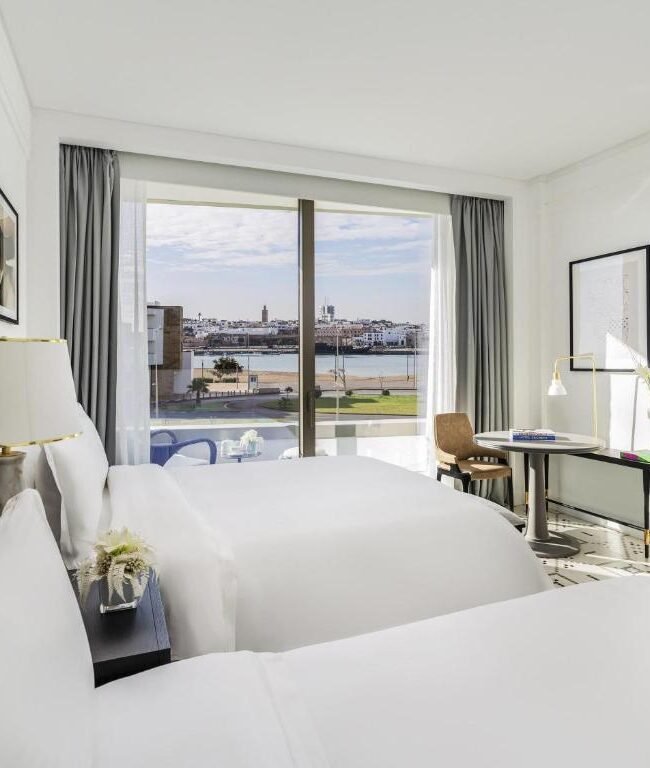 The Fairmont La Marina Rabat Sale Hotel features three restaurants, a bar, and a rooftop outdoor pool. It also offers a garden, a terrace, a fitness center, and a spa. A 24-hour front desk, room service, and luggage storage are available. The air-conditioned rooms include a wardrobe, kettle, minibar, safe, flat-screen TV, and a private bathroom with a shower. All rooms are equipped with a coffee machine. Some rooms include a kitchen with a dishwasher, microwave, and refrigerator. The hotel boasts four exciting restaurants and bars. A buffet breakfast is served every morning. This 5-star property features a wellness center with 10 spacious treatment rooms, including a hammam suite and a sauna. Rabat is 2.1 km from the hotel, while Kenitra is 34 km away. The nearest airport is Rabat-Salé Airport, 7 km from the property. An airport shuttle service can be provided at an additional cost.