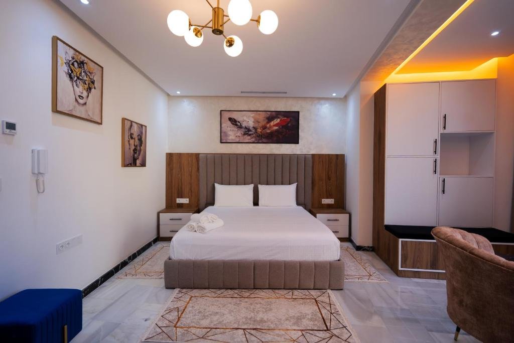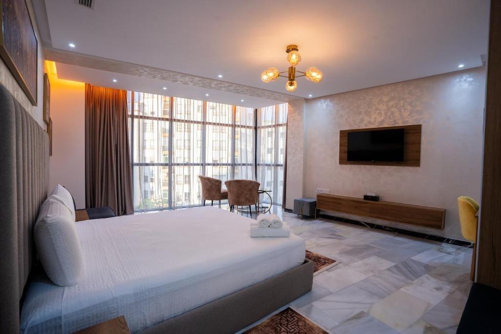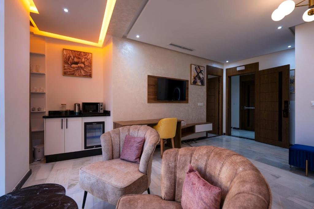 IMMOKA SUITEs welcomes you to Tangier, 1.9 km and 1.8 km from Tangier Municipal Beach and the American Legation Museum, respectively. It offers air-conditioned accommodations with city views and free Wi-Fi. Each unit features a flat-screen TV and a private bathroom with a shower, bathtub, and complimentary toiletries. The kitchenette includes a refrigerator, microwave, and minibar. A toaster and kettle are also provided. An à la carte breakfast is available on site. Forbes Museum of Tangier and Tangier City Mall are 2.8 km and 3 km from the property. The nearest airport is Tangier Ibn Battouta Airport, and a paid airport shuttle service is available.Couples particularly appreciate the location of this property. They rated it 8.7 for a two-person trip.